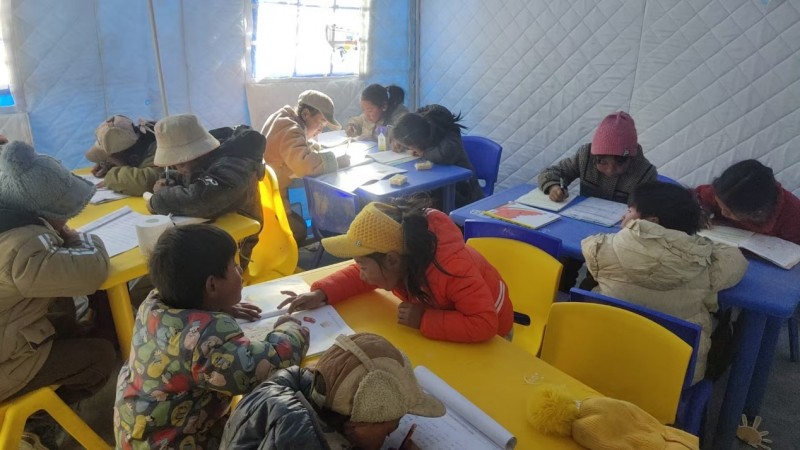 过渡安置阶段,壹基金围绕受灾群众尤其是儿童的实际需求,构建多元化服务体系。在定日县、昂仁县捐建200套过渡安置板房,保障群众重建期临时居住需求;联动12支队伍开展“数字以工代赈”行动,组织629名救援队员与2616名本地村民参与家园清理与重建。