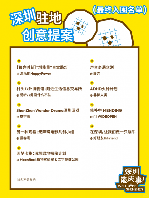 创意不拘一格,却都深深扎根于这片土地。经过活动官方专业评审的严谨甄选,9份最具代表性的优秀提案脱颖而出。它们不仅凝结着提案者对这座城市的凝视与热爱,更承载着一份共同的决心:用真实的行动,让深圳朝向更富想象力的明天生长。