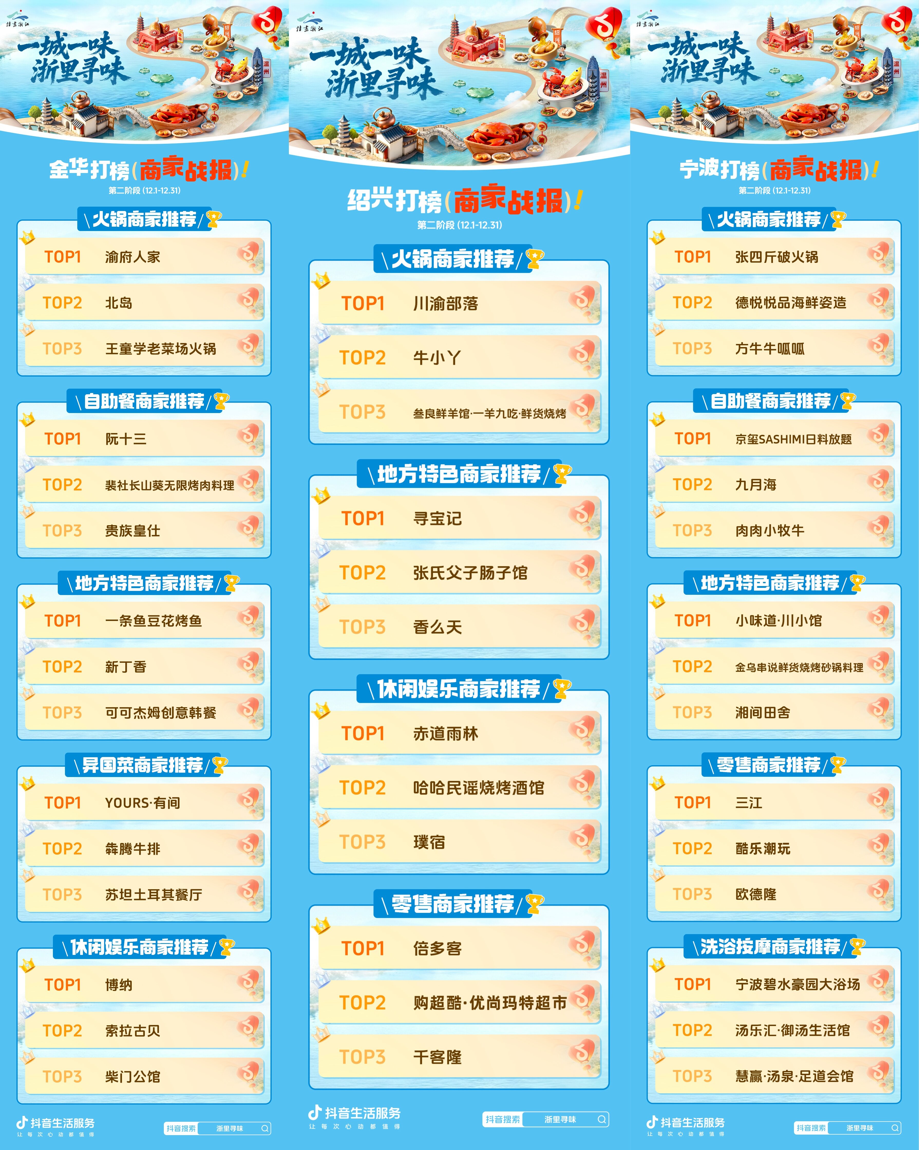 三、五城商家排位赛战报公布,解锁浙江城市的AB面