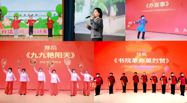 活动还穿插了丰富多彩的文艺展演。书院镇冰厂田幼儿园的孩子们表演《童心向党》,上海轻音乐团青年歌唱家丁一凡献唱《如愿》《一路生花》,基层文艺团队亦呈现快板、沪剧、舞蹈等节目,以艺术形式传递红色精神,展现薪火相传的生动气象。