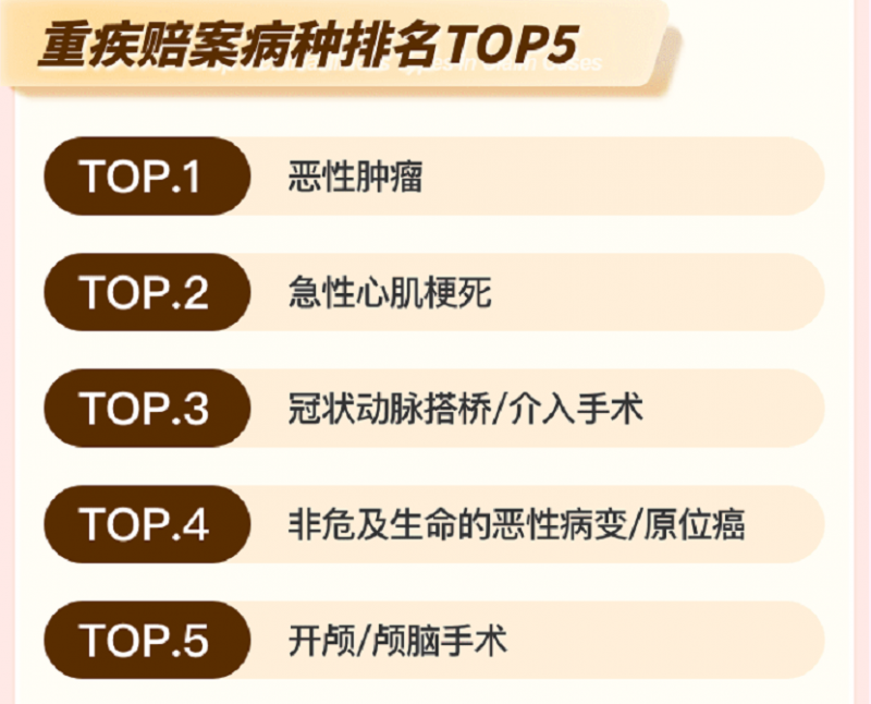 病种分布上,恶性肿瘤高居重疾赔付首位,非危及生命的恶性病变/原位癌跻身前五,癌症相关疾病成为公众健康的最大威胁。急性心肌梗死、冠状动脉搭桥/介入手术等心脑血管疾病占据两席,与现代人高压生活、作息不规律密切相关。想要更好抵御重疾风险,既要靠健康生活方式和早期筛查干预做好“预防”,也要通过配置足额的重疾保险筑牢“经济防线”。