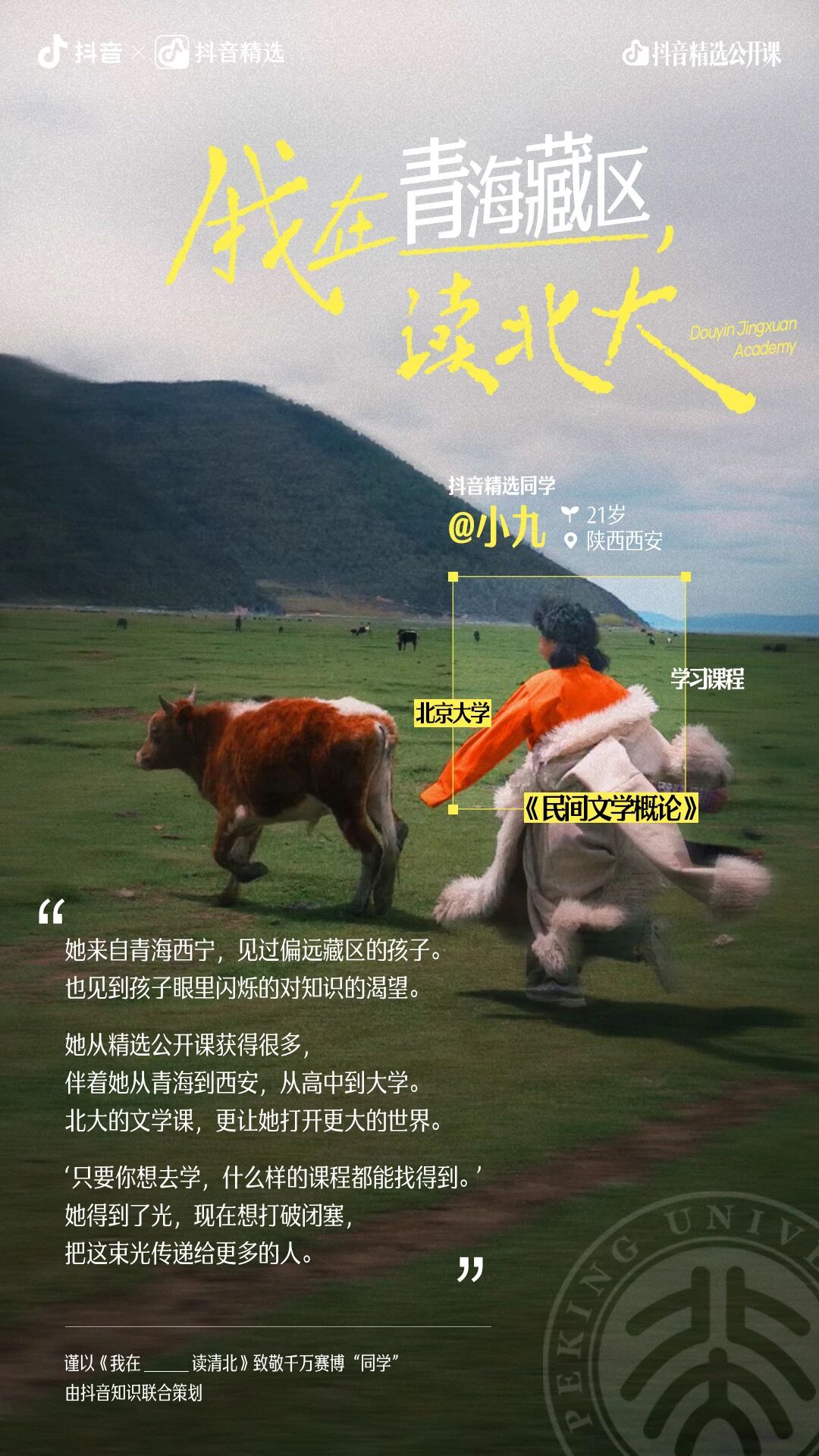 于是,抖音精选、抖音知识联合北大和清华,将他们的故事记录在这支短片,致敬千万同学。