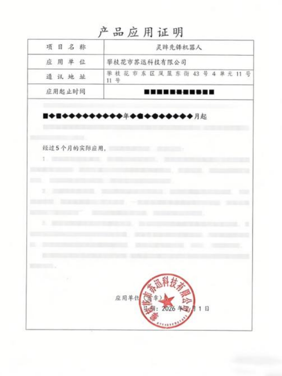 (灵眸先锋机器人智能消防产品应用证明)