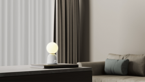 在杜歆越的亲自把控下,《Lumo 小光伴》体现出高度的设计完整性与哲学思考。产品整体造型优雅对称,线条流畅且比例精准,符合经典形式美法则。最具巧思之处在于底部集成的温度显示模块:LED字符平时完全隐藏,仅在需要时悄然浮现,不影响整体视觉纯净感。
