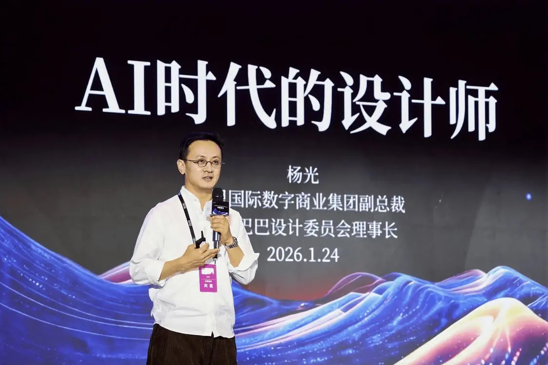 阿里国际数字商业集团副总裁、阿里巴巴设计委员会理事长杨光发表题为《AI时代的设计师》 的主题演讲。他指出,AI时代,设计师不缺先进生产力工具。伴随AI技术能力的涌现,设计师的能力体系也需要变革。技法重要性下降,审美和工具应用愈发关键。