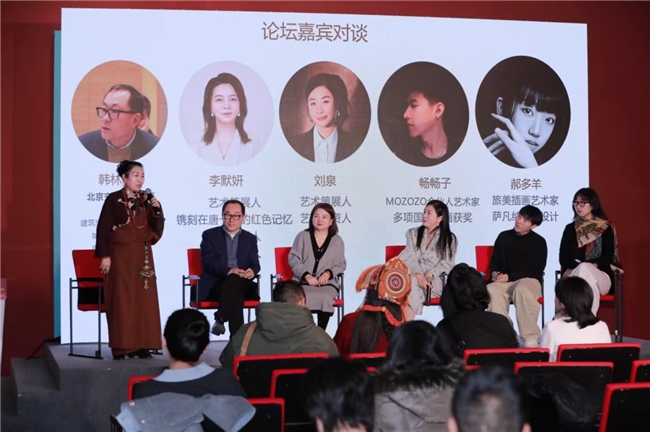 近日,在中国非物质文化遗产馆举办的“镌刻在唐卡中的红色记忆——郎卡杰唐卡创新艺术展”现场,一场“时空织锦——潮流艺术与千年非遗创新论坛”掀起思维风暴。这不仅是一场关于传统的讨论,更是一次面向未来的创作邀约。论坛由展览执行策展人李默妍与知名策展人刘泉共同主持,汇聚了建筑、潮玩、插画等领域的先锋创作者,共同探讨一个核心议题:如何让炉霍深厚的非遗基因,在当代创意浪潮中生长出全新的生命形态。