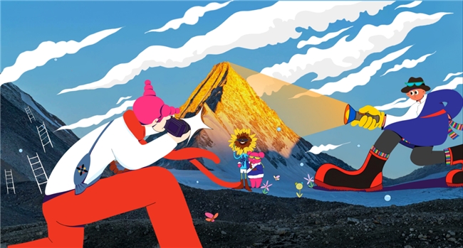 尤为引人注目的是,MOZOZO联合多位艺术家,围绕炉霍青稞、雪菊、沙棘等物产,创作了一系列兼具叙事性与收藏价值的潮流插画。例如,在一幅作品中,男孩用手电筒光“照亮”卡瓦洛日神山,隐喻内在觉知的唤醒;另一幅作品中,青稞苗与演奏扎念琴的男孩、迎风起舞的女孩共同构成一场生命的自然仪式。这些作品表明,潮流艺术可成为桥梁,将地域文化转化为可亲近、可收藏、可传播的当代情感载体,让年轻人通过“收藏一个故事”认识并向往炉霍这片“纯净之地”。
