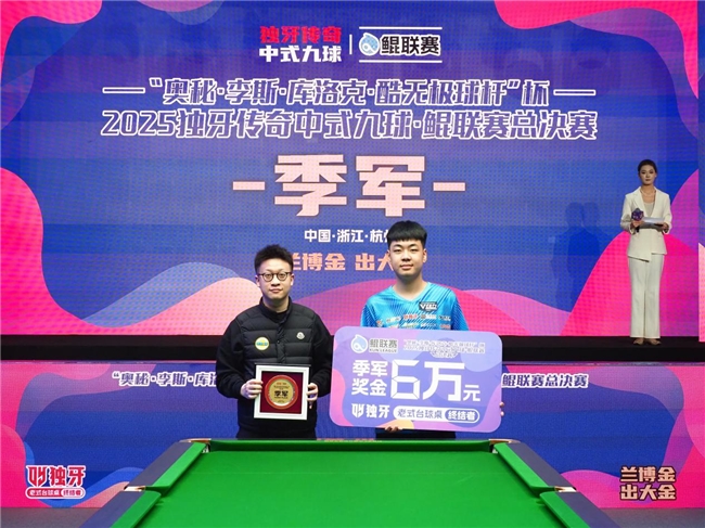 1月27日,“奥秘・李斯・库洛克・酷无极球杆” 杯2025独牙传奇中式九球・鲲联赛总决赛圆满落幕。历经12天的激烈角逐,陈成汉在众多参赛选手中脱颖而出,并在决赛中展现超强实力,问鼎鲲联赛总决赛青少年中式九球之王,斩获30万元奖金。蓝裕豪获得亚军,获奖金12万元,夏李傲斩获季军,获奖金6万元,闫冠杰获殿军,获奖金4万元。蓝裕豪凭借43金斩获搏金王,获4000元奖金。