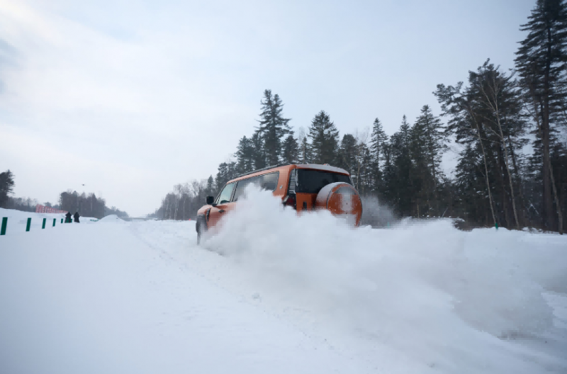为进一步展现纵横G700的实力,特别增设了冰上连续S弯、蛇形绕桩+麋鹿测试、圆环漂移、冰雪越野脱困等高难度操控项目,在项目测试中纵横G700的云台底盘大放异彩,百万级智能空气悬架支持五档高度调节,冰雪越野时一键升高,即可获得320mm最大离地间隙、≥40.3°接近角、≥32.3°离去角,极大提升通过性。更为关键的是,CDC可变阻尼减振器每秒扫描路面1000次并调整阻尼100次,在光滑冰面上提供了强大的侧向支撑,无论是连续S弯的灵活穿梭,还是圆环漂移的优雅掌控,皆能做到稳姿与舒适兼得。
