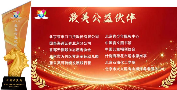 1月24日,菜百股份受邀出席“拾”光而行·聚爱如春——心飞扬十周年感恩盛典暨2025年度总结会。在本次大会上,菜百股份荣获“最美公益伙伴”称号,以表彰其在多领域持续开展的公益实践与正能量传递。同时,来自菜百股份“菜小宝·地球卫士”志愿服务项目的青少年志愿者们也荣膺“2025年度优秀志愿者”奖项。