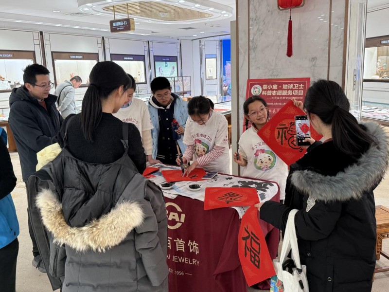 自2022年9月起,菜百股份依托北京菜百黄金珠宝博物馆,以“菜百黄金珠宝文化学苑”为载体,启动了“菜小宝·地球卫士”志愿服务项目,曾荣获首都志愿服务大赛西城区银奖。该项目秉承“弘扬志愿精神,传播科普文化,培养优秀品质”的宗旨,创新采用“企业支持+社会组织管理+公益教育”模式,持续面向青少年开展志愿服务培训与实践,组织博物馆讲解、志愿服务艺术展、迎春送福、集印打卡、非遗传承、环保宣传等形式多样的活动。凭借扎实的实践与良好的社会反响,项目曾荣获首都志愿服务大赛西城区银奖。