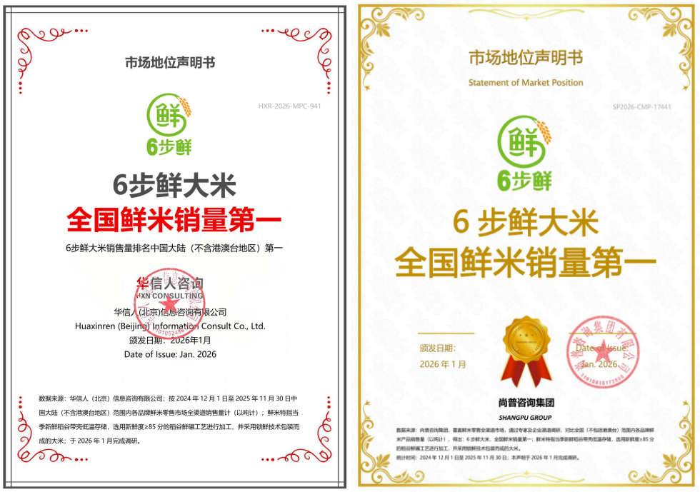 1月20日,经权威机构华信人咨询、尚普咨询集团调研,金龙鱼6步鲜大米斩获“全国鲜米销量第一”称号。这份基于2025年的全年终端市场监测的数据,印证了消费者对其品质的高度认可,形成“国际标准背书+国内市场追捧”的双重优势。