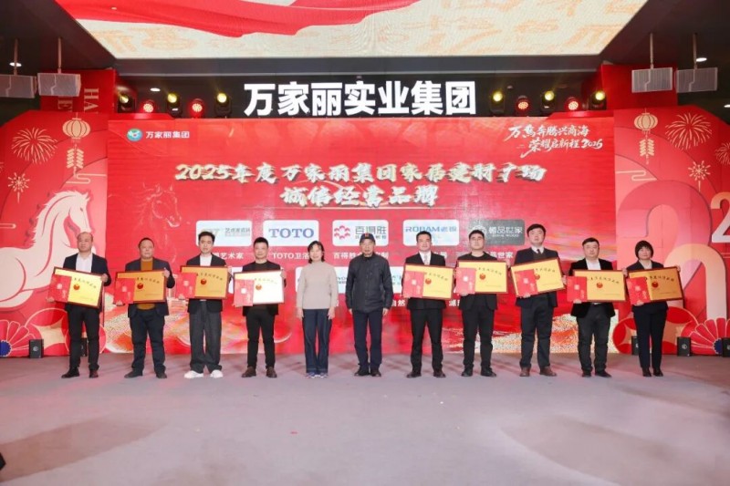 湖南省人大常委会原副秘书长万伏秀,长沙市人民政府原市长杜远明为2025年度万家丽集团家居建材广场/万家丽家居生活广场诚信经营品牌颁奖:东鹏艺术家、TOTO卫浴、百得胜全案定制、老板电器、樽品世家、麦克斯邦、左右家居、大自然、源氏木语。