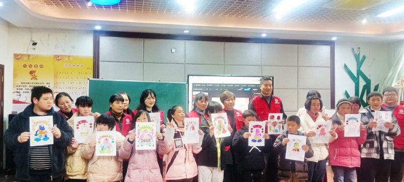 捐赠仪式后,志愿者们与孩子们展开了绘画互动环节。画纸铺开,彩笔就位,大小手一同执笔,共同描绘对新一年最美好的祝愿。没有指导,没有框架,只有自由地表达与温暖的陪伴。小马图案的填色中融入了孩子们对于祝福色彩斑斓的构想。这些看似简单的画作,是孩子们内心世界的窗口,也是连接志愿者与孩子们的情感桥梁。