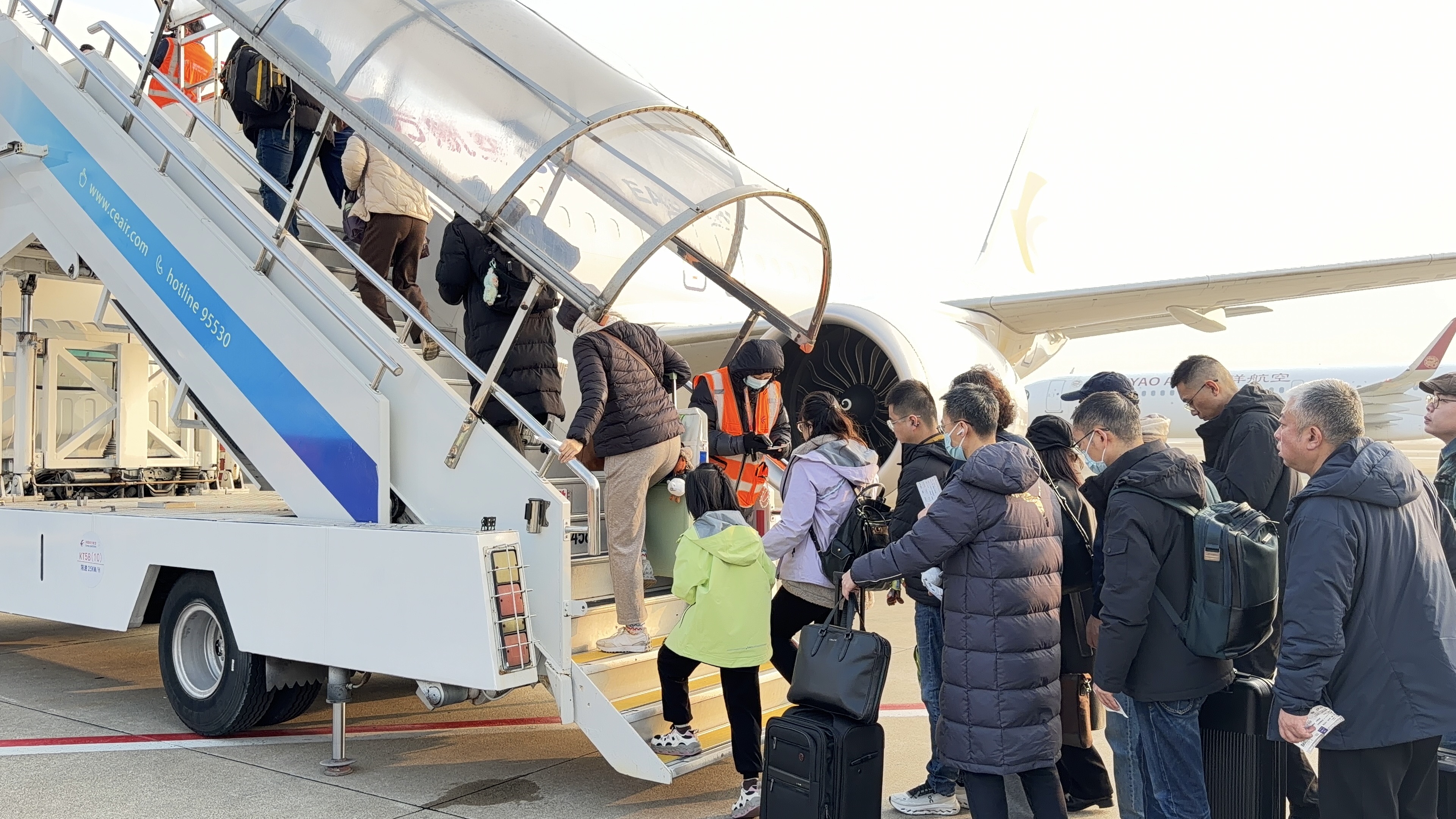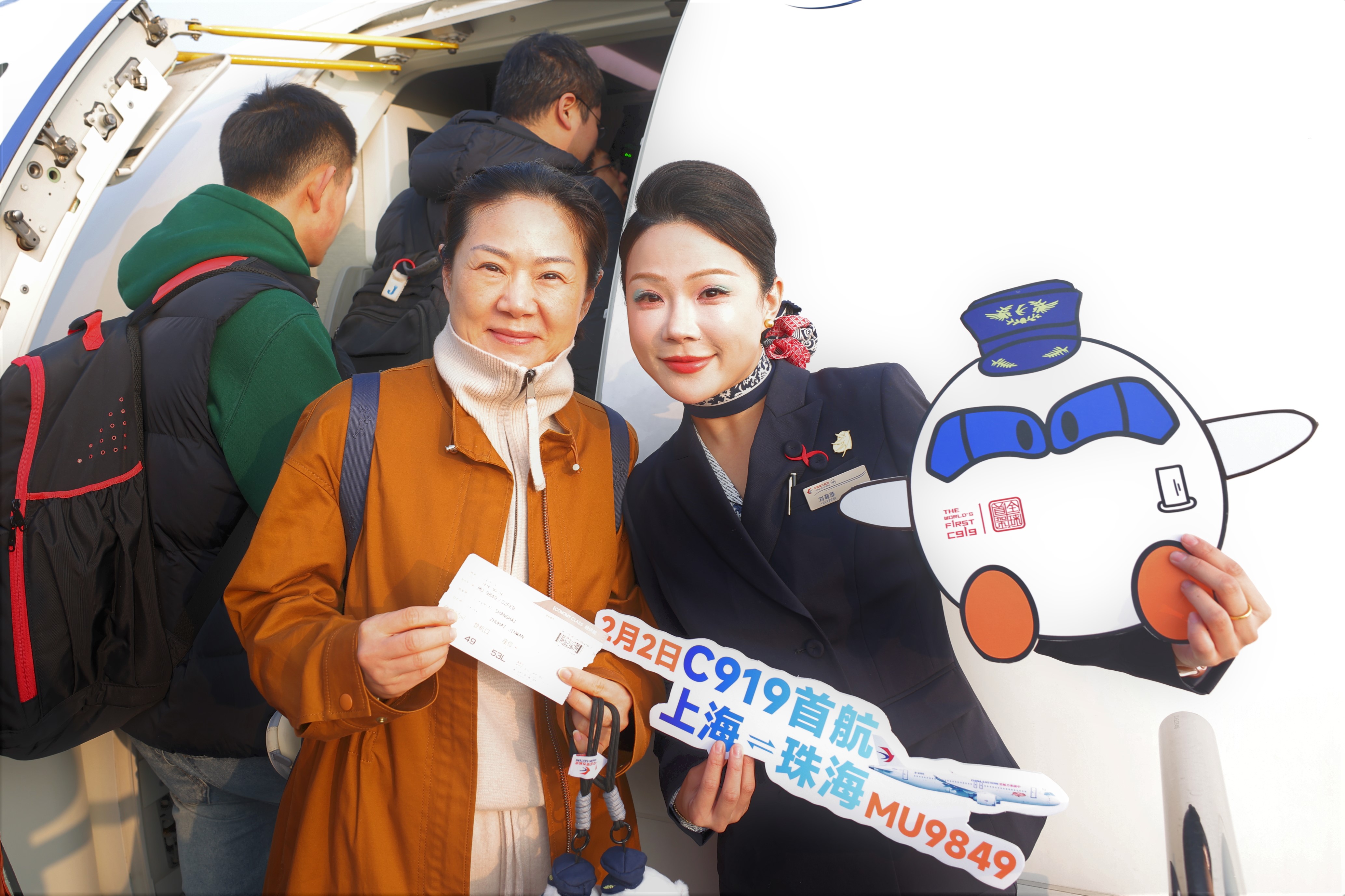 2月2日春运首日,东航国产大飞机C919开始执飞上海虹桥至珠海的定期商业航线,至此,东航14架C919飞机共执飞14城18条航线。