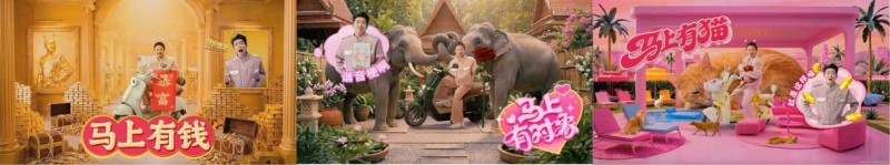 影片以外星从“卖马”为叙事框架,通过画外音的形式,幽默呈现地球人的“爱马”情节。片中,外星从通过潜入地球并亲身体验了一系列马年活动。“马上有钱”场景中,张兴朝骑着爱玛Q5,身后是金碧辉煌的金屋,巧妙的将产品与场景进行融合;“马上有对象”场景中张兴朝的座驾又换成了爱玛仰望A5,在“对象”的簇拥下,尽显贵族气质;还有“马上有猫”场景,张兴朝骑着爱玛墩墩,身后是一只硕大慵懒的橘猫,这种全面年轻化的表达方式,在二人的演绎下,受到了用户的强烈认可。