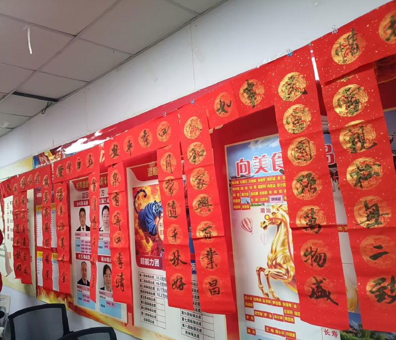 阳光人寿长寿支公司举办“翰墨迎春,情暖腊八”主题活动,特邀书法爱好者与员工代表现场挥毫,一幅幅笔力遒劲、寓意吉祥的春联跃然纸上,工作人员将满载温情的墨宝赠予客户及外勤伙伴,在墨香氤氲中深化了团队凝聚力与客户情感联结。