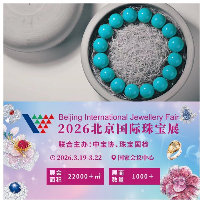 3月19—22日,由中国珠宝玉石首饰行业协会和珠宝玉石首饰国检集团联合主办的2026北京国际珠宝展即将在北京·国家会议中心举办。湖北竹山绿松石展团将组织优秀绿松石企业携源头臻品亮相,邀您静享竹山绿松石的天地灵韵。