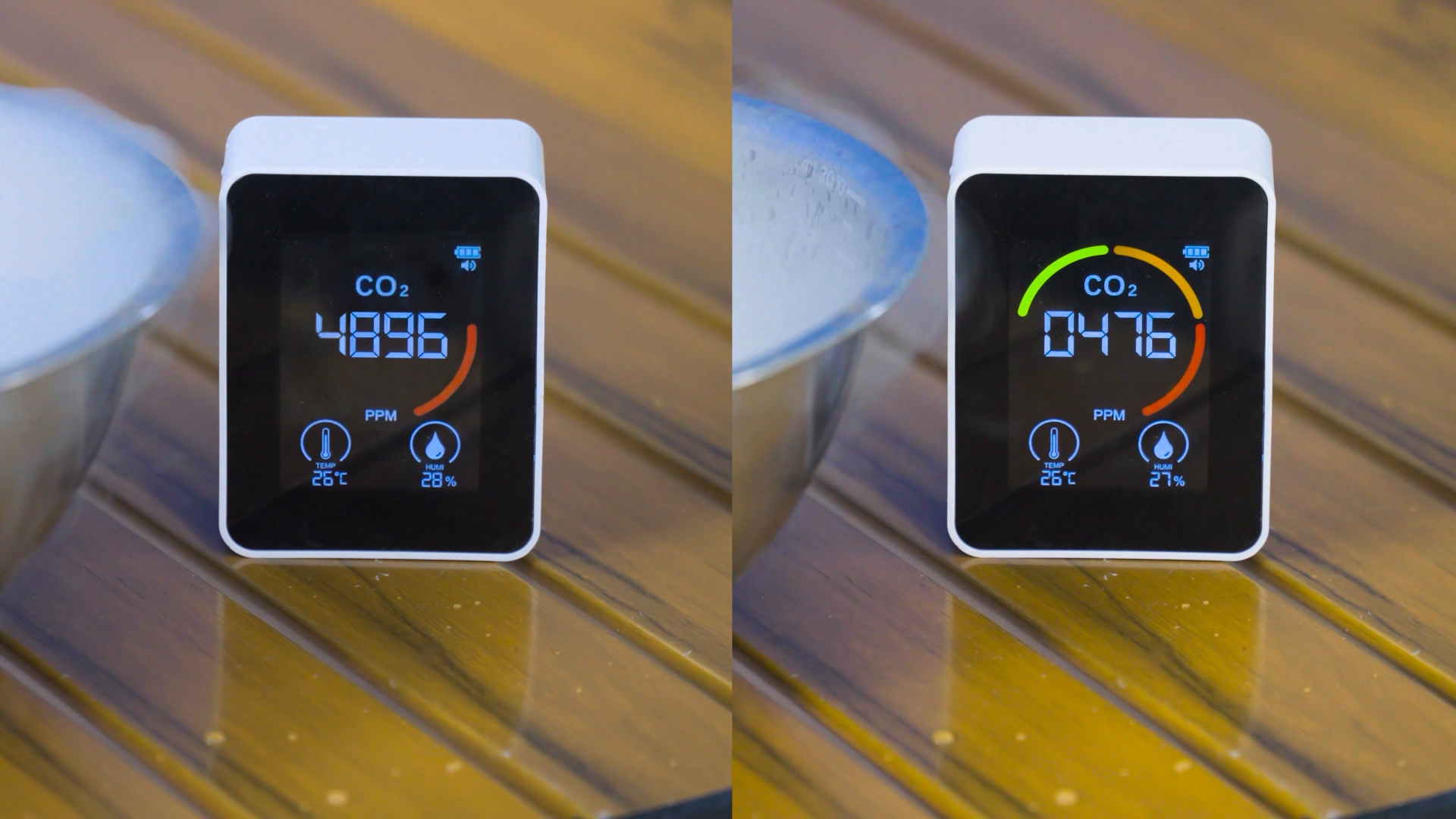 随后的“空气焕新大作战”环节,模拟密闭环境下室内二氧化碳浓度升至4057PPM,开启新风模式后,双循环新风系统开始运行,60m³/h澎湃新风量与全效内循环净化协同运作,二氧化碳浓度快速下降至1000PPM以下。空气质量变化还通过TVOC气体传感器实时显示,当空气指标发生变化时,系统可智能开启新风,让用户在室内也能沉浸式感受到“森林鲜氧”般的清新体验。
