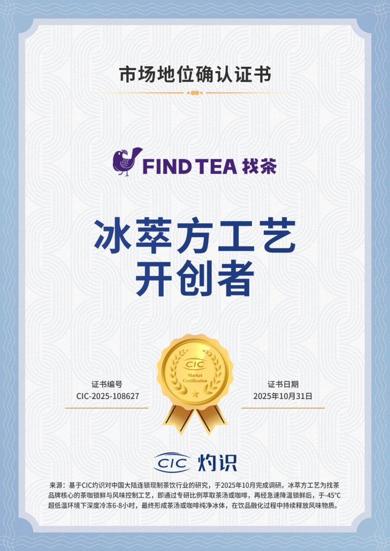 从“冰萃方™”工艺破解行业痛点,到定义“东方茶冰”新品类,「找茶」的初步实践提供了一条清晰的破局路径:在高度同质化的竞争中,回归产品本质与消费体验的技术创新,依然能够构建坚实的竞争壁垒,赢得消费者的真心选择。作为“东方茶冰”品类的开创者,「找茶」以其技术驱动的模式,正在为行业带来新的参照与更多想象空间。