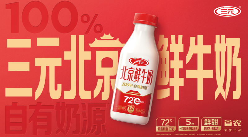 市场表现充分印证这一战略的有效性。2025年,三元低温鲜奶在北京市场占有率突破50% 并持续攀升,液态奶整体份额稳居区域第一。其中,2025年 9 月推出的战略大单品“三元北京鲜牛奶”上市后销量环比、同比均实现大幅增长,凭借优质口碑实现市场知名度与消费者美誉度双提升,进一步巩固了三元在低温鲜奶赛道的领先地位。
