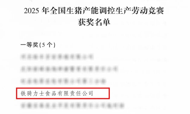 近日,农业农村部畜牧兽医局、中国农林水利气象工会联合发布了“2025年全国生猪产能调控生产劳动竞赛“评选结果。铁骑力士食品有限责任公司凭借其在生猪产能调控领域的创新实践,荣获2025年全国生猪产能调控生产劳动竞赛一等奖。