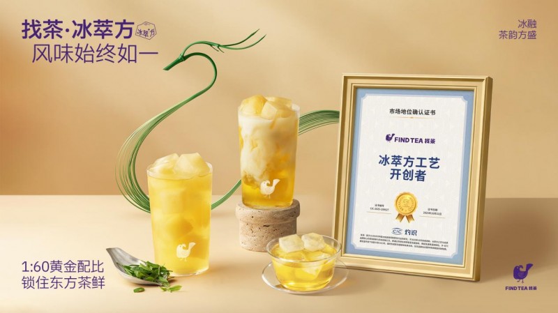 「找茶」始终坚守茶本真风味,以核心的“冰萃方™”工艺,从始至终保留茗茶本味,让消费者能品味到纯粹的风土地貌;同时以现代食品科学为支撑,将传统茶香“翻译”成年轻人更易感知与喜爱的风味语言。