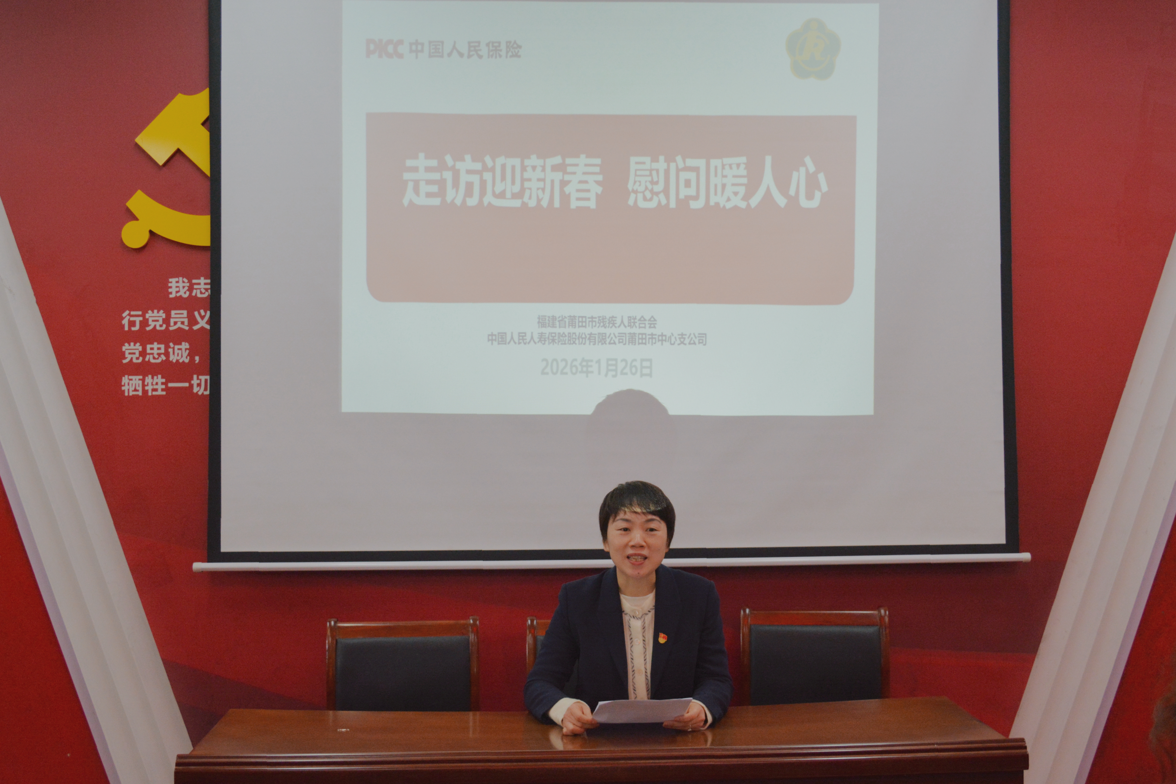 1月26日,人保寿险莆田中支携手市残联于涵江区梧塘镇九峰村开展“情暖九峰 助残同行”联合主题党日活动。市残联党组书记、理事长陈念禧、人保寿险莆田中支党委书记、总经理翁健钦以及双方党员、干部共同出席活动。