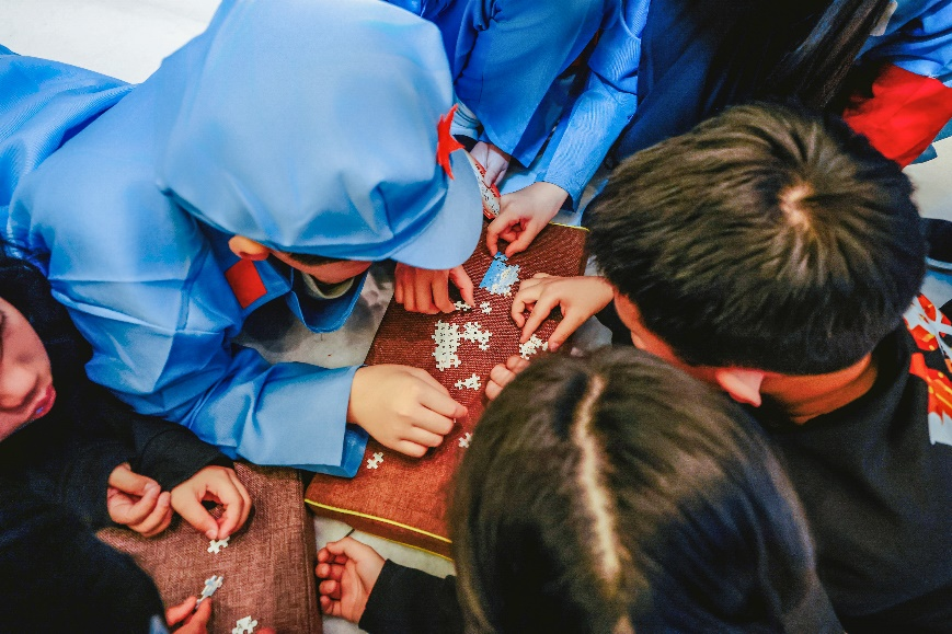 本次特训营以1935年红军小分队失联的历史背景为蓝本,打造了“时空裂缝”核心剧情,学员化身“时空支援团”成员,全程以专属身份参与情报收集、伤员救护、战友营救等主线任务。不同于传统说教式教育,活动通过真实场景搭建、专业NPC互动、动态剧情触发,让孩子们“活”在历史情境中:在“麻雀传信”任务中体验革命年代情报传递的惊险,在“纸屋庇护所”搭建中感受资源匮乏下的创造力,在“人体传送带”挑战中领悟战友间的信任与担当。