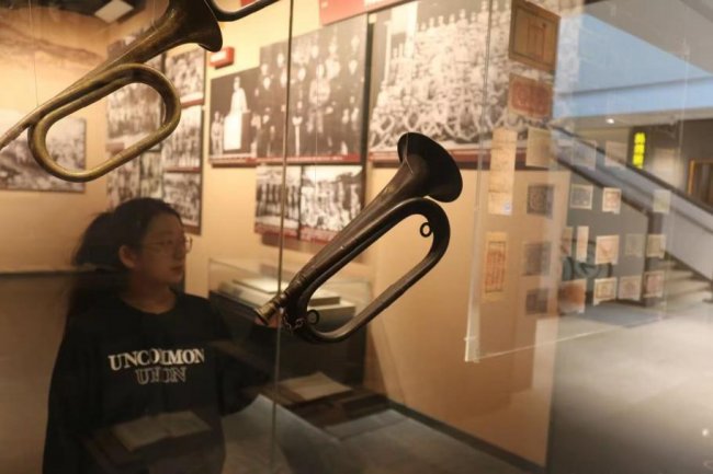 在讲解员的带领下,实践团先后参观了主展馆和人物馆。展区内,泛黄的革命手稿、磨损的军装鞋帽、锈迹斑斑的武器装备,以及逼真的场景复原,系统展现了新四军从组建铁军、开赴敌后,到重建军部、浴血奋战,最终战略反攻、夺取胜利的十年烽火征程。在“皖南事变”展区,成员们驻足凝视珍贵史料,深切缅怀革命先烈。