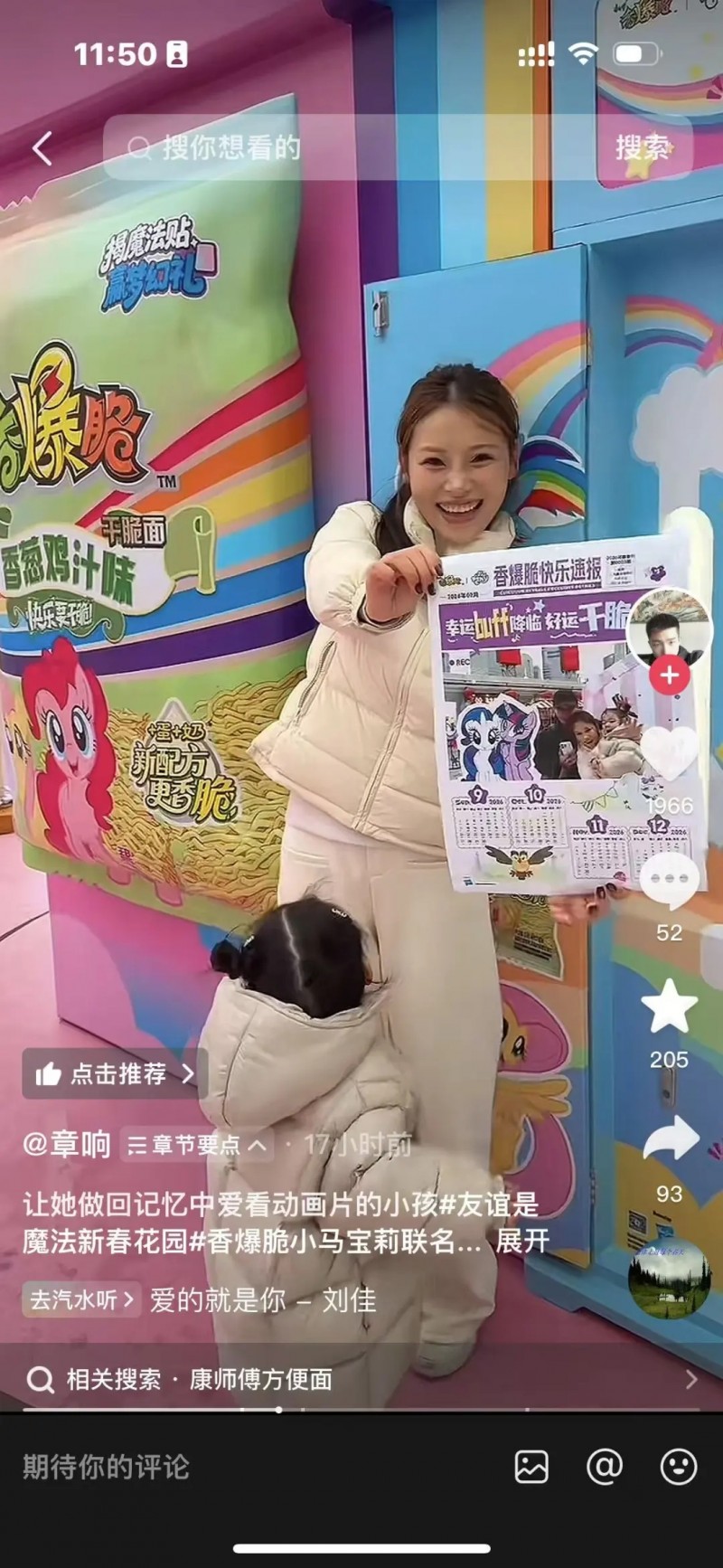通过营造与核心创意“爆炸头”强力呼应、从视觉到体验实现了全方位沉浸的快闪空间,消费者参与的不只是一次春节促销活动,而是一段可以被记忆、被分享的情感体验。在小红书、抖音等平台,达人和活动参与者围绕 #、# 香爆脆小马宝莉联名,通过探店打卡、攻略分享、贴纸交换、周边开箱等多元化内容角度,进行深度种草。