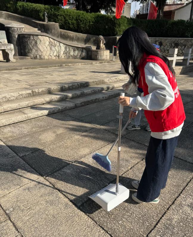 在深入了解历史的基础上,“弘毅”实践团的成员们并未止步于“知”,更致力于“行”。他们自发分组,在伯先公园内及伯先路部分公共区域,开展了环境清洁志愿服务,仔细擦拭公共设施,捡拾零星垃圾,以实际劳动维护历史场所的整洁庄严。同时,部分同学主动担任起“临时讲解员”,利用刚刚学到的知识,为公园内的一些游客,特别是青少年游客,进行简短而生动的历史片段讲解,分享赵伯先的革命故事和街区历史,将历史的回响传递给更多人。