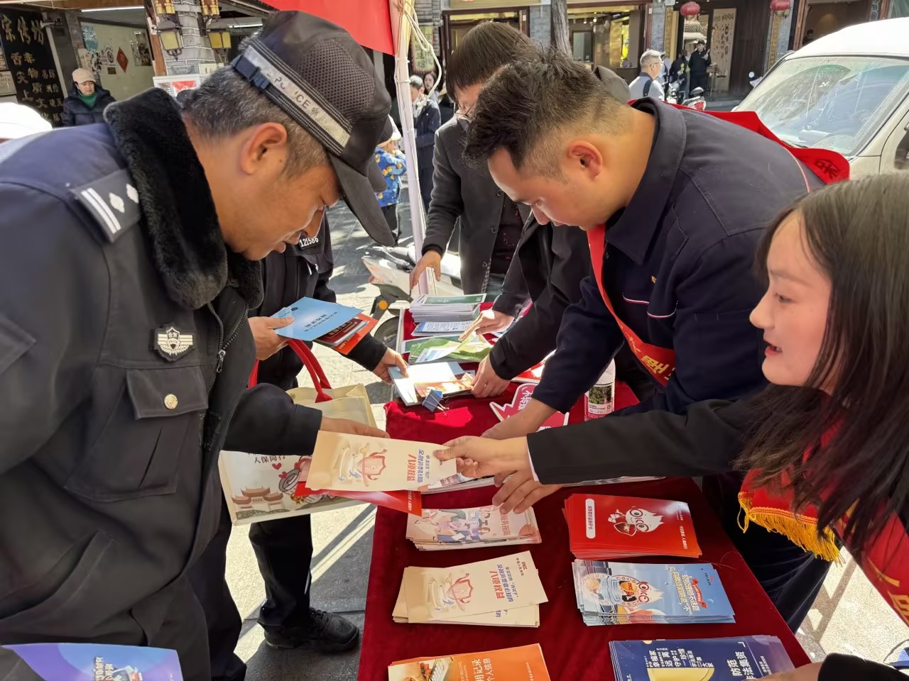 2026年2月6日,正值岁末年初,大理市喜洲镇年味渐浓,外地游客流动频繁,集市交易活跃。大理金融监管分局、大理州保险行业协会、大理州银行业协会紧抓这一关键节点,联合多家保险公司、银行机构在喜洲镇四方街共同开展“守住钱袋子•过好幸福年”岁末年初防范非法金融集中宣传日活动。人保财险大理州分公司主动响应、积极参与,以贴近群众、务实暖心的方式普及金融安全知识,切实履行金融保险企业社会责任。
