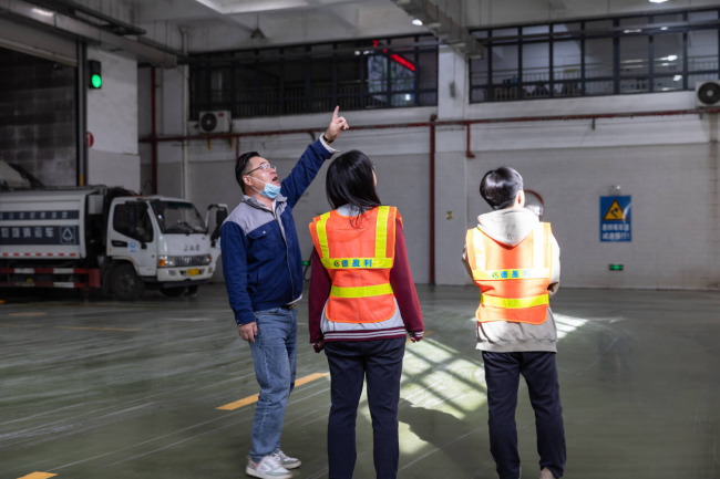 (图为实践成员在社区垃圾站协助开展垃圾分类工作。刘子茜 供图)