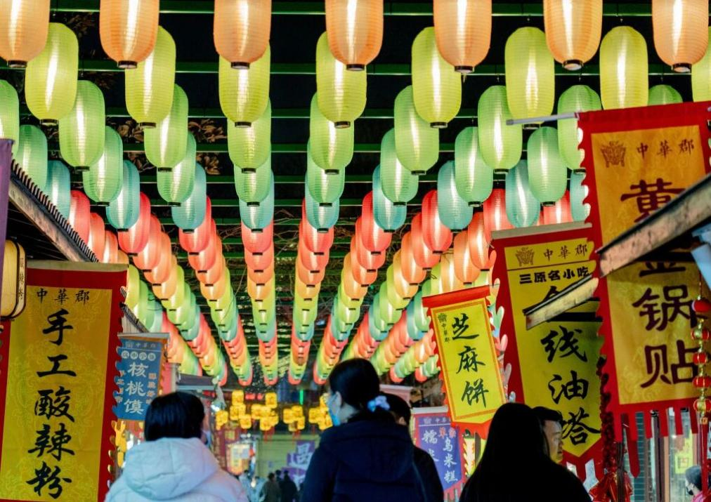 互动体验方面,景区在各点位设置了金鼎添财、蒙眼击鼓、五子棋士、小小神农氏、单杠 60 秒、童年滚铁环等多款 NPC 互动游戏,让游客在游玩中收获乐趣;同时打造发财台阶、大树毛衣、祈福墙、拍马屁装置、空脸打卡点、新年铃声装置等美陈打卡装置,营造沉浸式拍照场景,为游客的新春打卡提供多样选择。此外,景区还推出集五福活动,游客通过参与互动游戏或景区消费集齐五福卡,即可兑换华小郡 IP 印章、钥匙扣、祈福球等精美礼品,进一步提升游玩的参与感与获得感。值得一提的是,活动特别打造亲子友好体验内容,山海经花车巡游、小小神农氏等项目,让家长与孩子能共同体验新春民俗,共度温馨亲子时光。