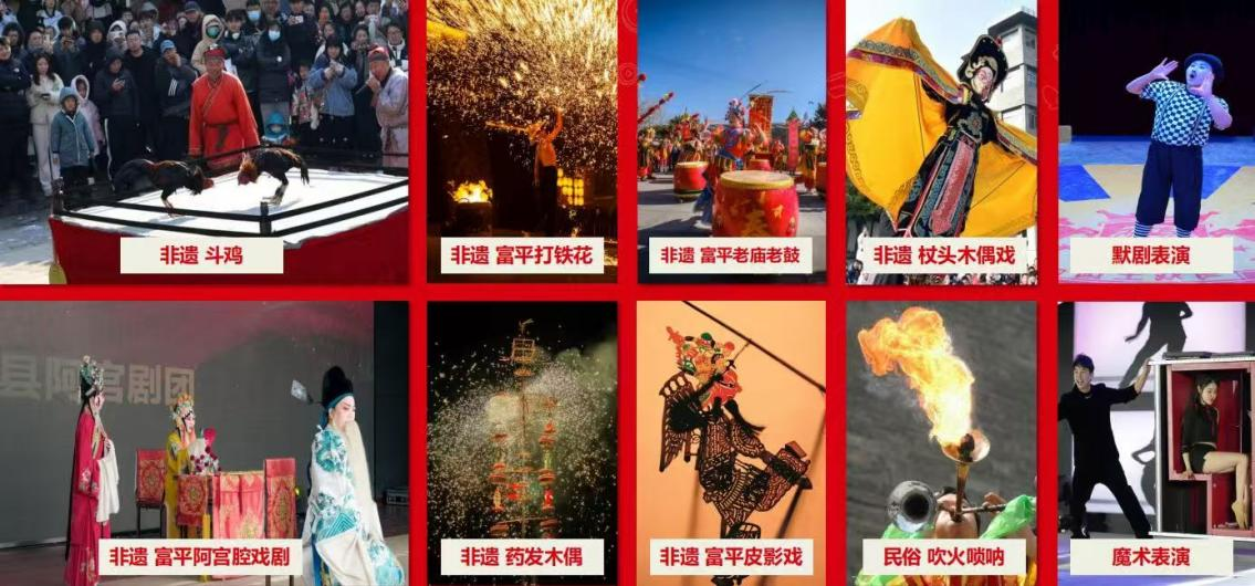 除亮点节目外,景区还精心筹备了众多非遗民俗类节目,非遗斗鸡竞技、杖头木偶戏、阿宫腔戏剧、吹火呐呐、老庙老鼓、富平皮影戏等非遗项目集中亮相,搭配哑剧、魔术等表演,让游客近距离感受非遗文化的独特魅力。颂祖祈福盛礼、启灯仪式、佤族篝火晚会、荆山九州情、黄帝铸鼎荆山原等特色节目,以及戏闹百乐门、国风小丑、妖精媒婆互动秀、元宵文化晚会等趣味演出也将轮番登场,全方位满足不同游客的观赏需求。