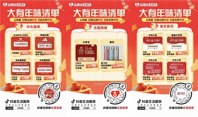「心动大有年味」内容方向锚定北方年货消费场景,通过明星影响力与北方年味情绪的深度绑定,集中放大零售类内容的消费关注与搜索需求。平台以明星内容为引爆点,撬动商场、商超等多品类商户主动参与,让高关注流量顺畅转化为真实到店与交易,持续验证抖音生活服务“内容驱动生意增长”的平台价值。