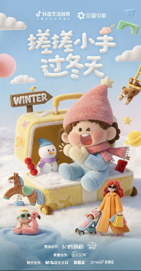 当新一代父母告别“扫兴式”育儿,学会以孩子的视角看待世界,冬日亲子生活方式也开始向尊重孩子的“放电天性”转变。洞察到这份藏在寒意里的亲子诉求,抖音生活服务联动巨量引擎,打造“搓搓小手过冬天”专属IP,以线上内容引领趋势、线下场景体验落地感知,打破冬日亲子陪伴的局限,串联起趣味、温度与文化,为亲子家庭打造一场兼具仪式感与烟火气的冬日生活新范式,让冬日因陪伴而温暖,因趣味而鲜活。