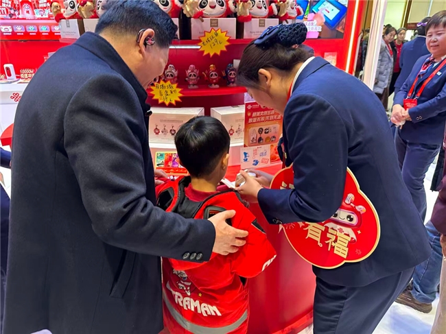 北京联通特别设置的文创展示区,成为庙会中兼具颜值与心意的“打卡新地标”,集中呈现了多款北京冬奥会吉祥物“冰墩墩”特别纪念版“马墩墩”特色文创,赤兔、青鬃、桃花等多色款式错落陈列,作为新春特色点缀,满足市民游客的收藏需求,也承载着马年最真挚的祝福,成为市民游客争相选购的新春好礼。