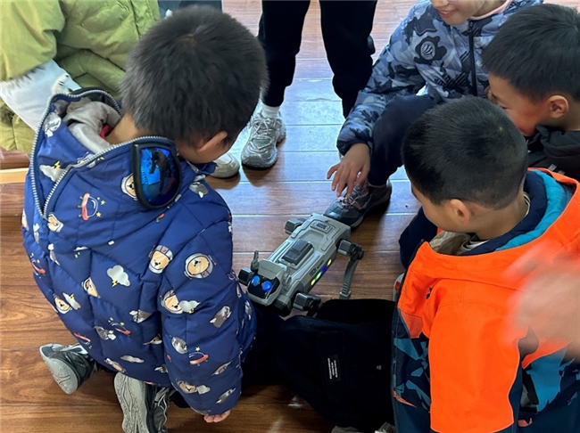 实践队成员与AI智能编程机器狗一同走进安康社区课堂,用科技元素点亮财经启蒙课/图:杨蕴涵