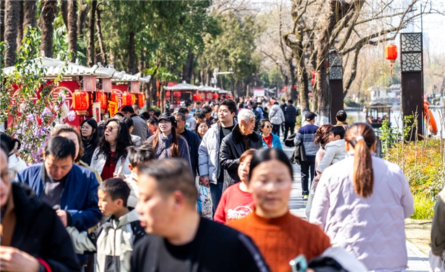 大年初五,合肥包公园景区洋溢着浓厚的节日氛围,作为中央广播电视总台马年春晚分会场拍摄地,吸引广大市民游客前来打卡体验。