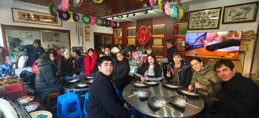 图 中智师生在江苏高淳学习羽毛扇制作
