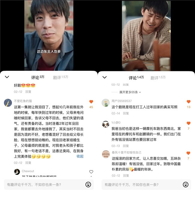更具行业意义的是,短剧内容的创新升级激活了用户自发传播与情绪互动,让短剧从“被动观看”变为“主动分享”,《北往》中摩托返乡、仗义助人的片段刷屏社交平台,无数网友结合自身返乡经历留言评论,“这就是我回家的路”“这一幕看哭了”,让剧集成为春运情绪的集体出口。