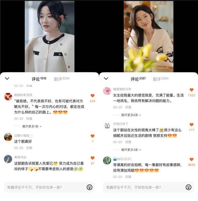 《爱我万岁》聚焦36岁离婚女性的人生重启,没有悬浮大女主,只有真实的情感困境、职场压力与自我觉醒。剧中“不内耗、做自己、先爱自己”的金句被广泛传播,精准击中当代年轻人精神痛点,被称为“女性成长电子网课”,不少观众表示“不再倍速观看,会暂停细品台词”。