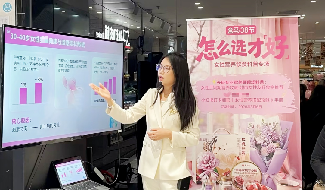 三八妇女节来临之际,3月6日下午2点,一场女性健康科普活动在广州、深圳、上海、天津、北京、杭州六座城市的盒马门店同步展开。
