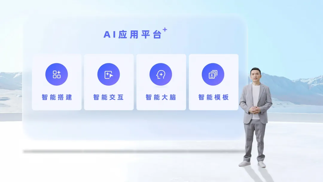 发布会上,氚云产品负责人尹鹏详细拆解了AI应用平台的核心能力。新平台通过三大引擎重构应用生命周期——智能搭建重构生产力、智能交互重构用户体验、智能大脑重构业务能力,并最终将这些集成为智能模板。