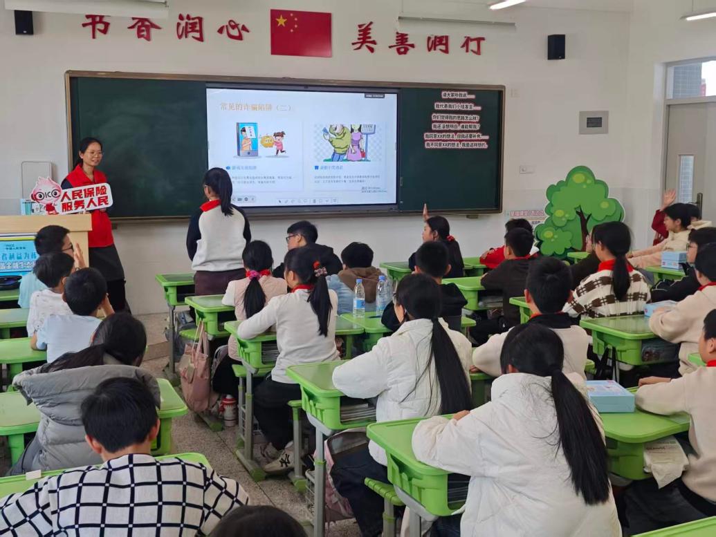 泉州中支走进泉州师范学院第三附属小学,为六年级学生开设“保险护成长,防诈伴我行”特色课程。宣讲人员用案例讲解+互动问答,拆解“校讯通虚假投保”“教育金返还诈骗”等套路,传授防诈口诀,引导孩子成为“家庭金融安全小卫士”。