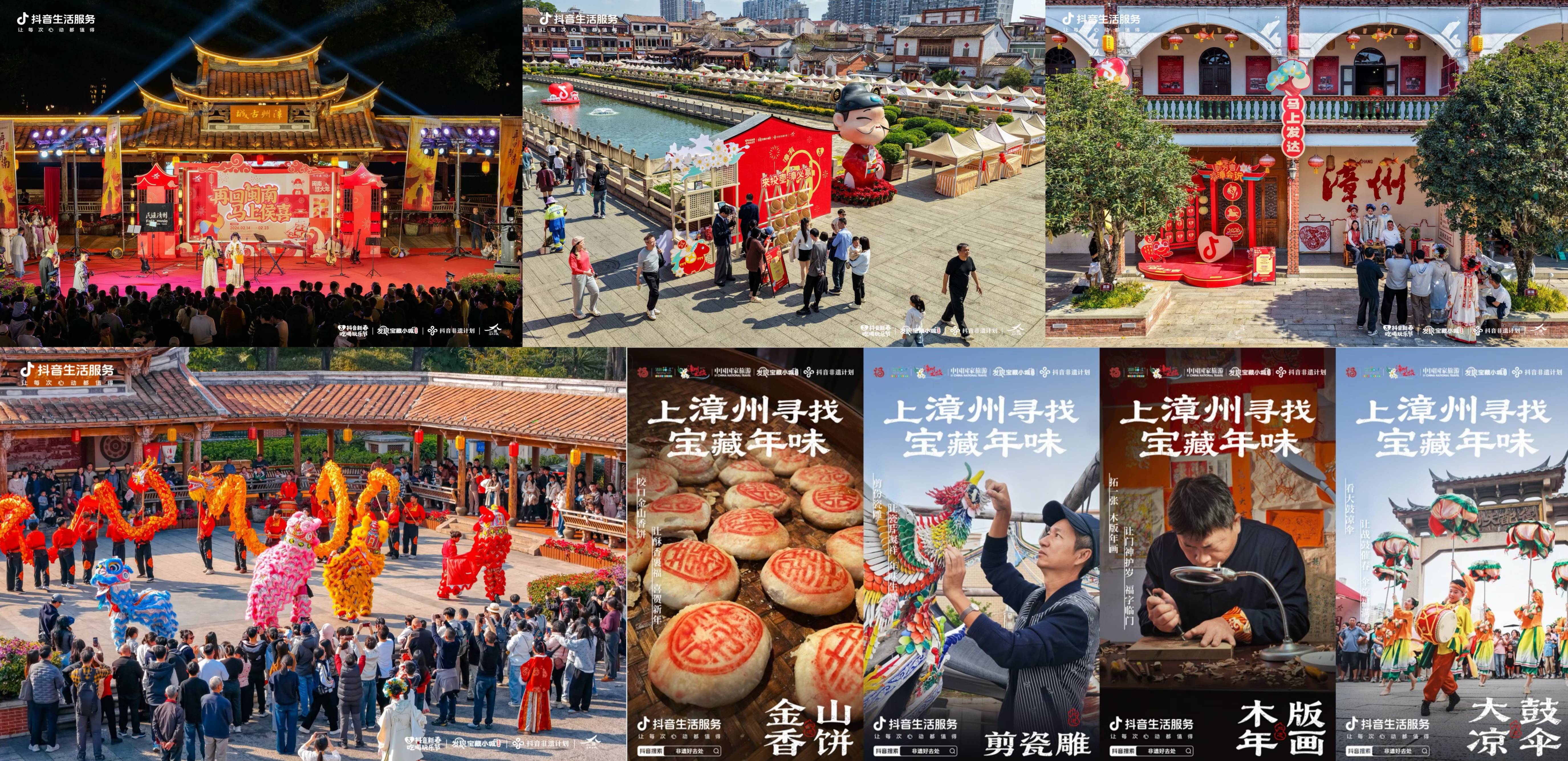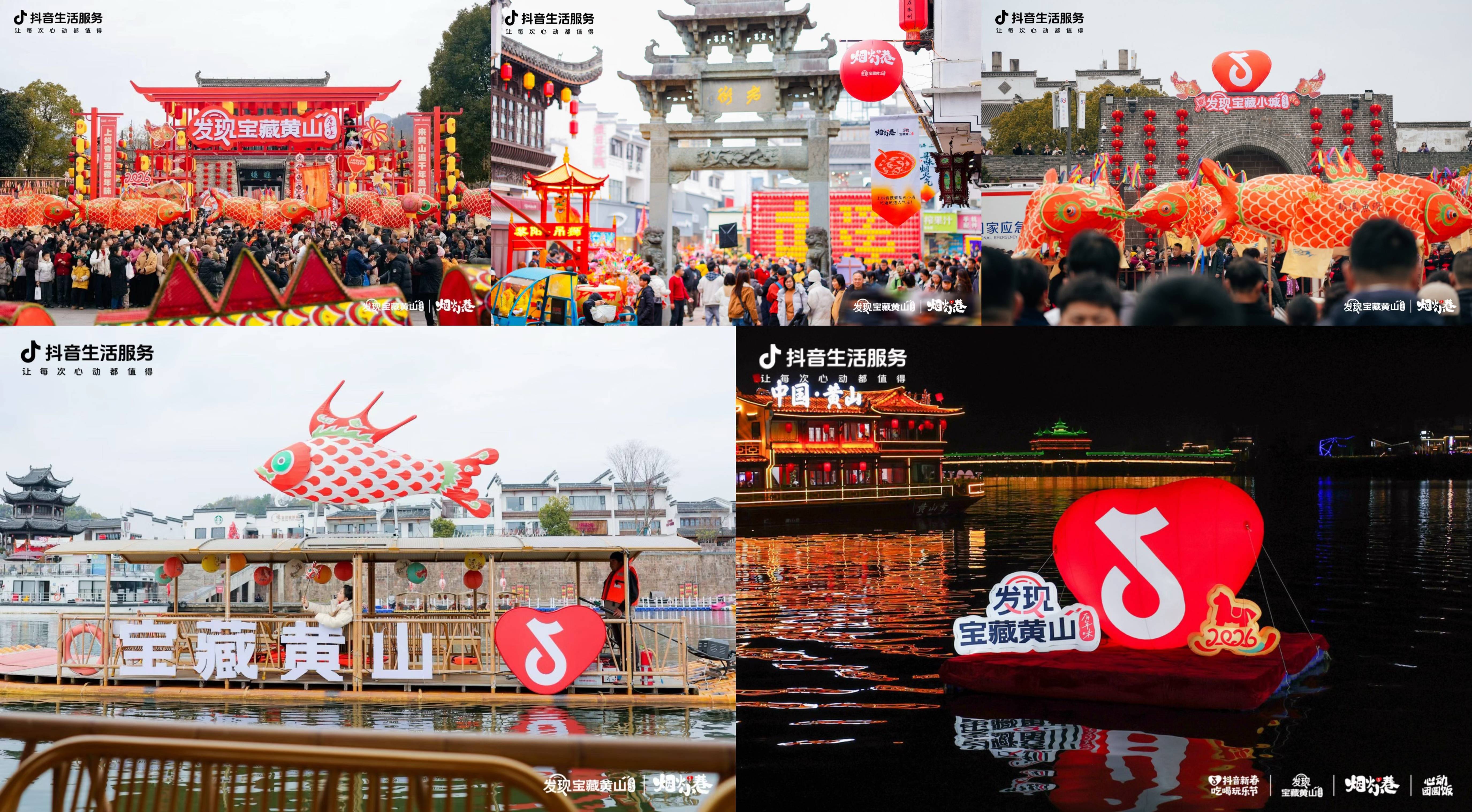 为了更好传承非遗,也为了让这份热闹与仪式感重回当下,抖音生活服务合作了一批坚持以非遗民俗,打造浓郁年味的宝藏小城,开启一场名为「发现宝藏小城·有非遗」的狂欢。这场狂欢活动中,非遗及民俗在古城中苏醒,街巷成为好吃好玩好逛的沉浸式乐园;明星、达人化身可靠的非遗体验搭子;商家诚意推出高性价比的套餐。活动开始后,黄山、漳州、宜宾、开封、襄阳、唐山这六座城市游人如织,#在家乡灯会里感受地道年味 等话题热度也持续走高飙升。最终,这场集体奔赴的盛会,创造了无数温暖美好的回忆,带来城市吃喝玩乐消费增长,也为地方文旅添上浓墨重彩的一笔。