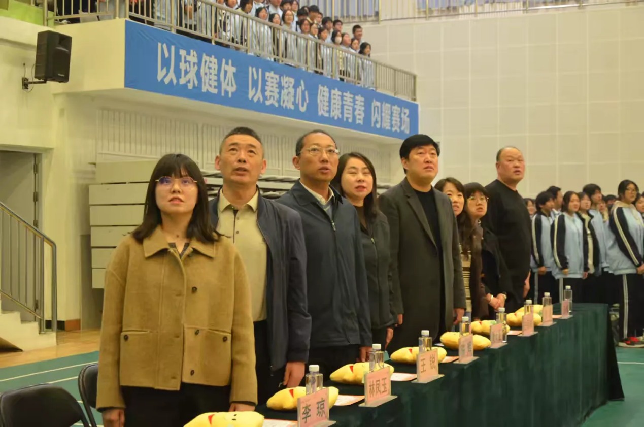 联赛伊始,全体师生肃立,举行升国旗、奏唱国歌仪式。雄壮的国歌响彻篮球馆,鲜艳的五星红旗冉冉升起,师生们心怀敬意行注目礼,为联赛奠定了热血向上、奋勇拼搏的精神基调。
