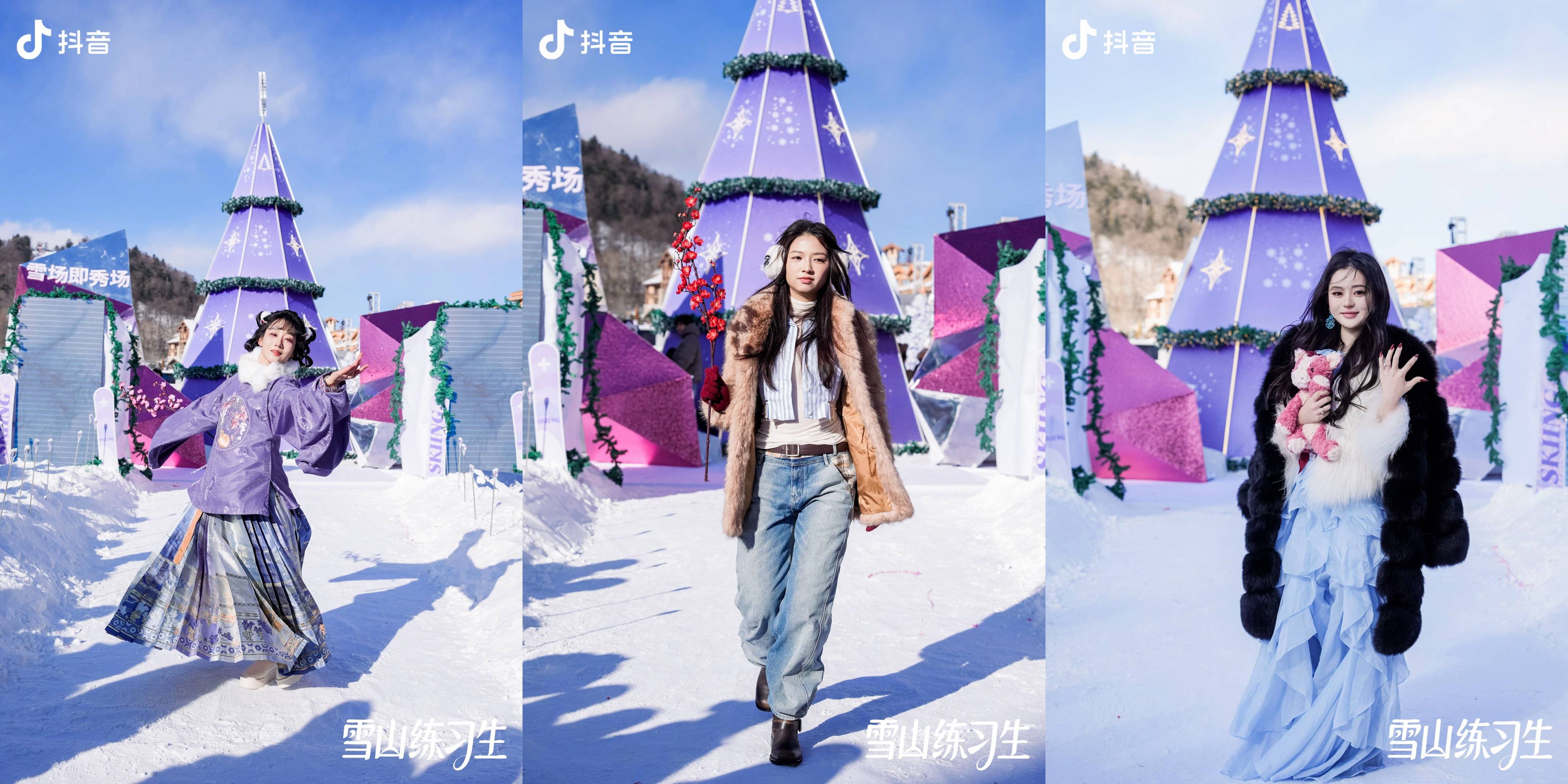 「雪山练习生」正是巨量引擎精准卡位冰雪消费新趋势的产物。在长白山雪场,30位来自抖音平台美妆、穿搭、摄影、舞蹈、体育等领域的创作者变身“雪山练习生”,通过雪地潮酷个人秀和不同点位的打卡游戏,获取活动徽章,达成“雪位出道”。伴随着创作者们对活动内容的记录和分享,「雪山练习生」的热度从线下蔓延至线上,转变为一场全民参与的冰雪狂欢。大众讨论的内容也从活动本身拓展至玩雪装备、出片打卡点等诸多维度,为“冰雪美学”注入更丰富的内涵,让抖音平台成为全网冰雪内容高地。